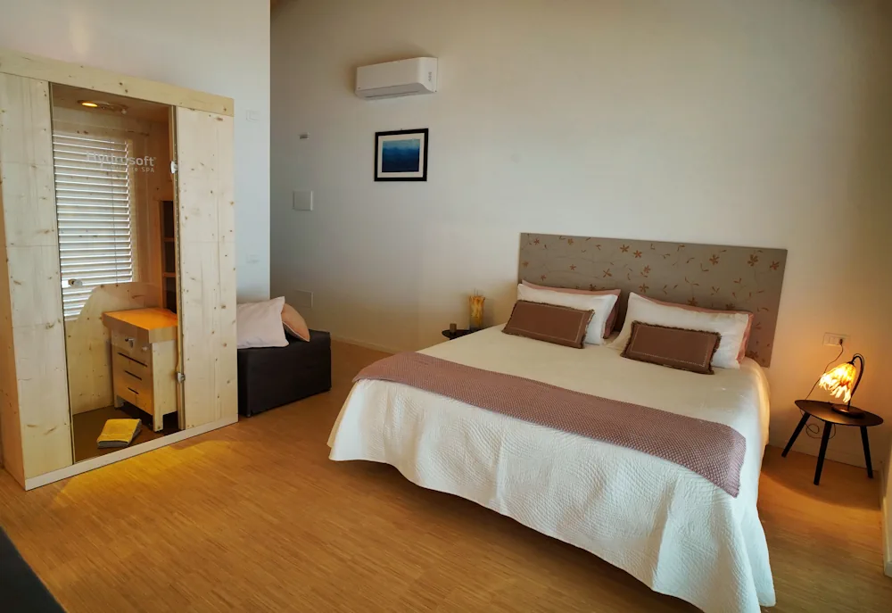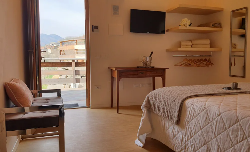Die vier komfortablen Gästezimmer sind hell, gemütlich und mit viel Liebe zum Detail eingerichtet. Sie verfügen über komfortable Betten, eigene Badezimmer mit Dusche, Minibar, Fön und TV und zum Teil eine Außenterrasse. Für besondere Wohlfühlmomente bieten die Zimmer „Cristallo delle Grazie“ und „Speranza“ einen Private SPA-Bereich mit Hydrosoft-Kabine, die rund um die Uhr genutzt werden kann. Ein reichhaltiges Frühstücksbuffet mit Produkten vom eigenen Hof, kostenloses WLAN, privater Parkplatz, Seifen und Shampoos sowie der Zugang zum beheizten Whirlpool mit Blick auf das Bergpanorama runden den Aufenthalt ab.