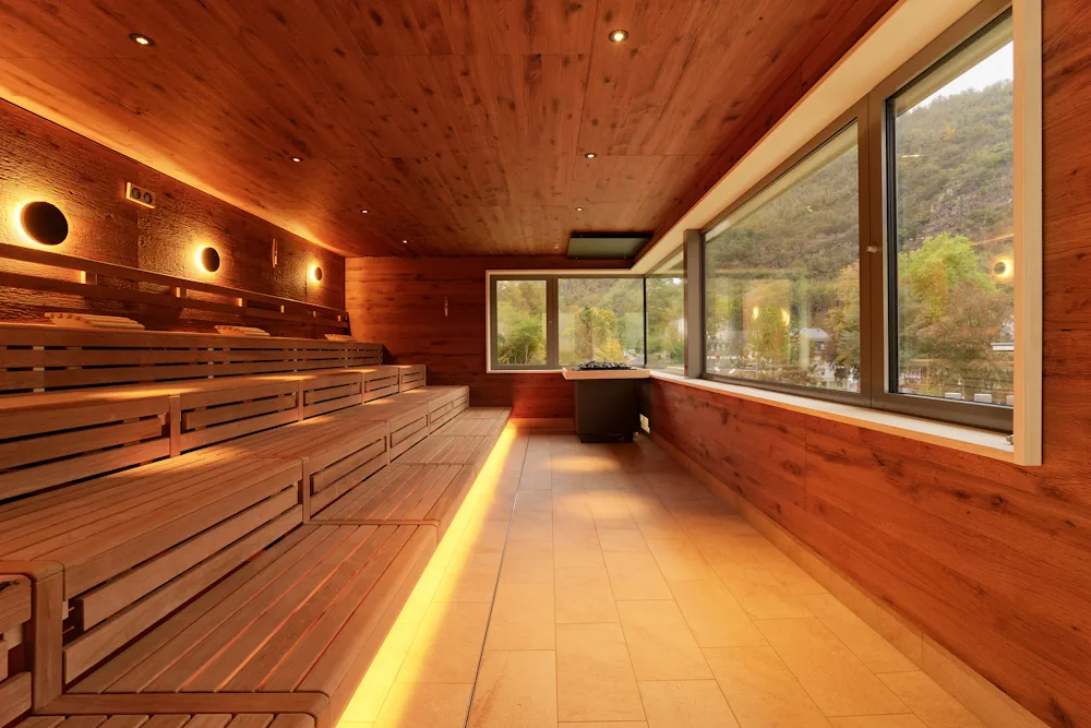 Die großzügige Saunalandschaft mit Außenbereich führt auf die Spur des Vulkanismus. Ob Vulkansauna, Lavalichtsauna, Vulcanusschmiede, Schiefersauna, Eifel-Hütte oder im Dampfbad, jeder Saunagang verspricht ein ganz besonderes Erlebnis. Zur Entspannung laden Ruheräume im Lounge-Charakter und ein Kaminzimmer ein.